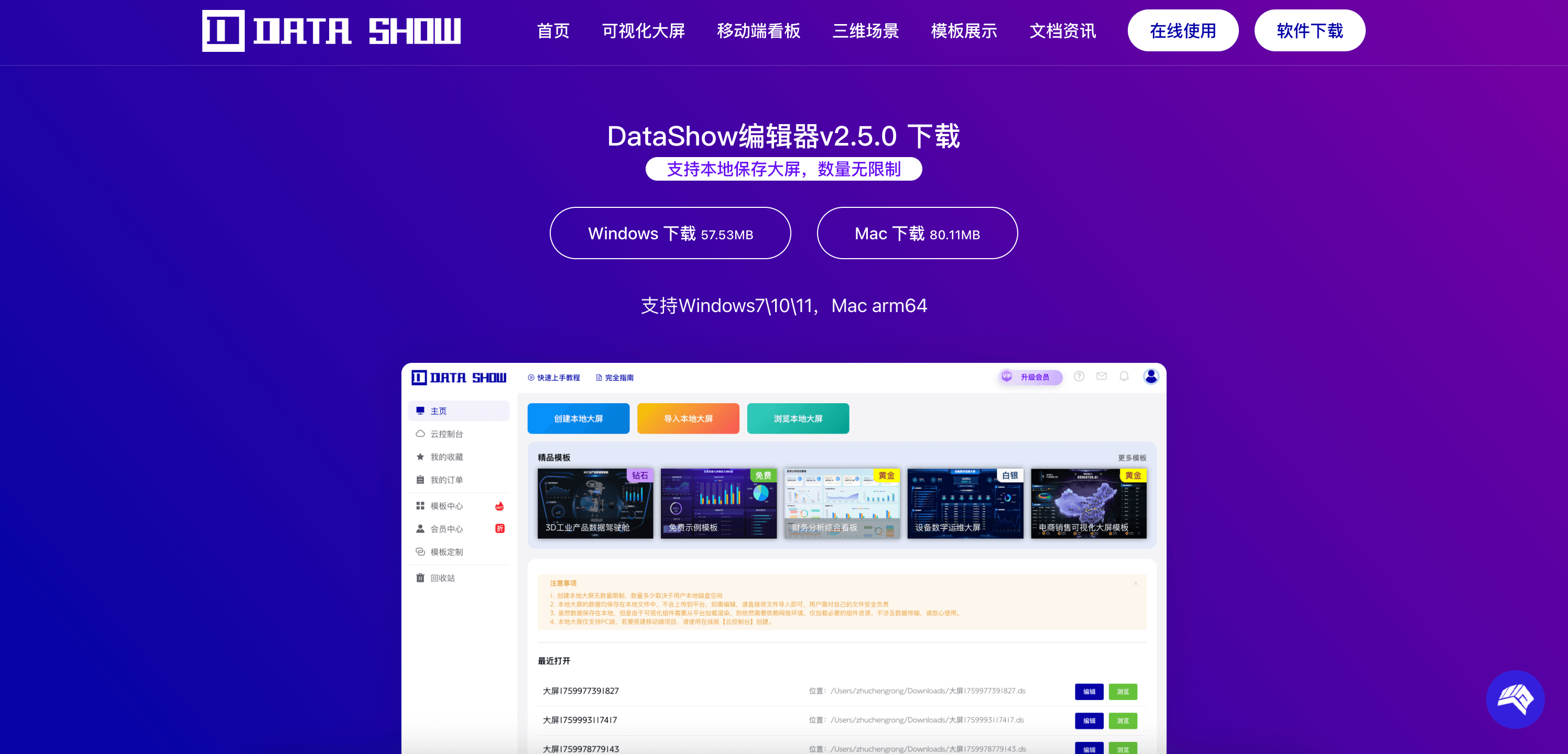 通过拖拽图表组件,快速搭建可视化页面,并且内置众多的炫酷模板可直接在其基础上进行修改,操作门槛低,不需要专业的开发人员以及额外购买服务器。