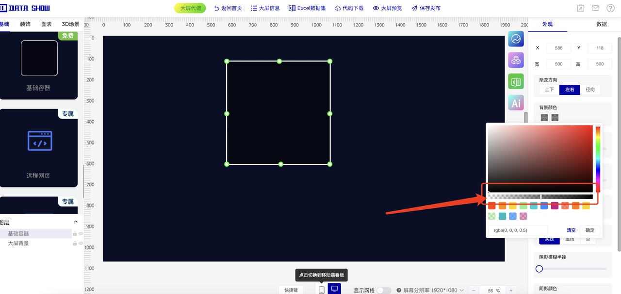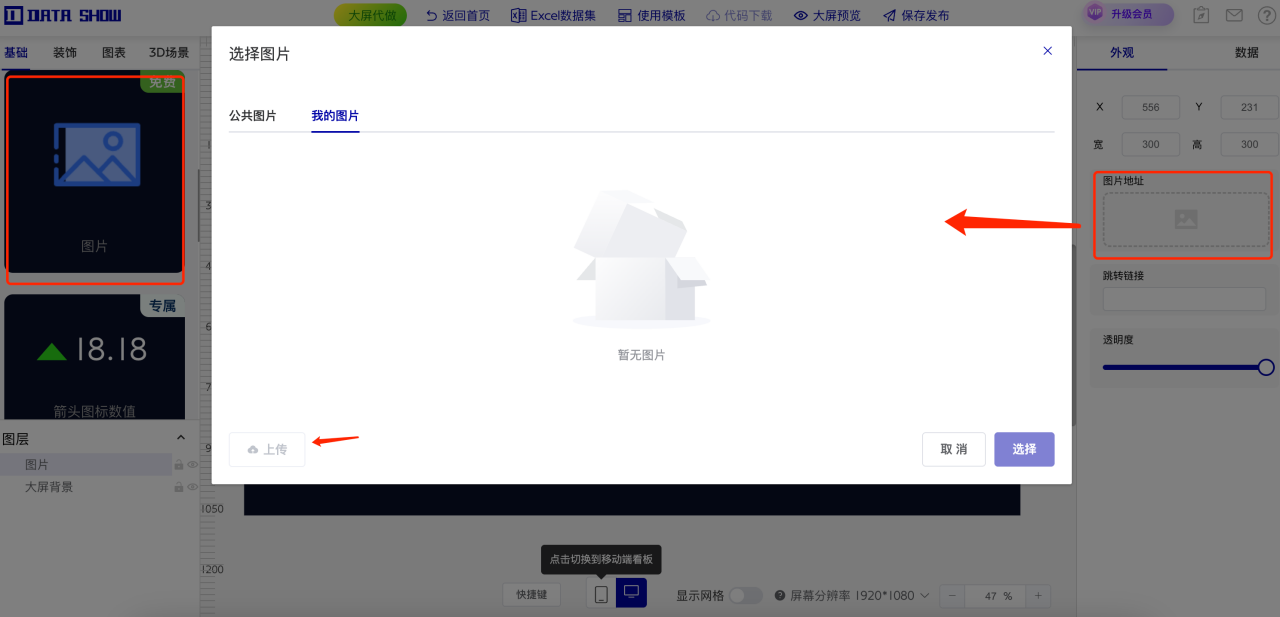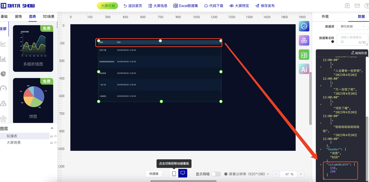 大屏在线编辑器,拖拽式操作,图表丰富,数据可配置,支持excel导入以及api接口,内置各行业炫酷模板