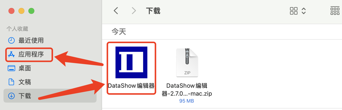 DataShow编辑器.app拖拽到左侧边栏的「应用程序」 中