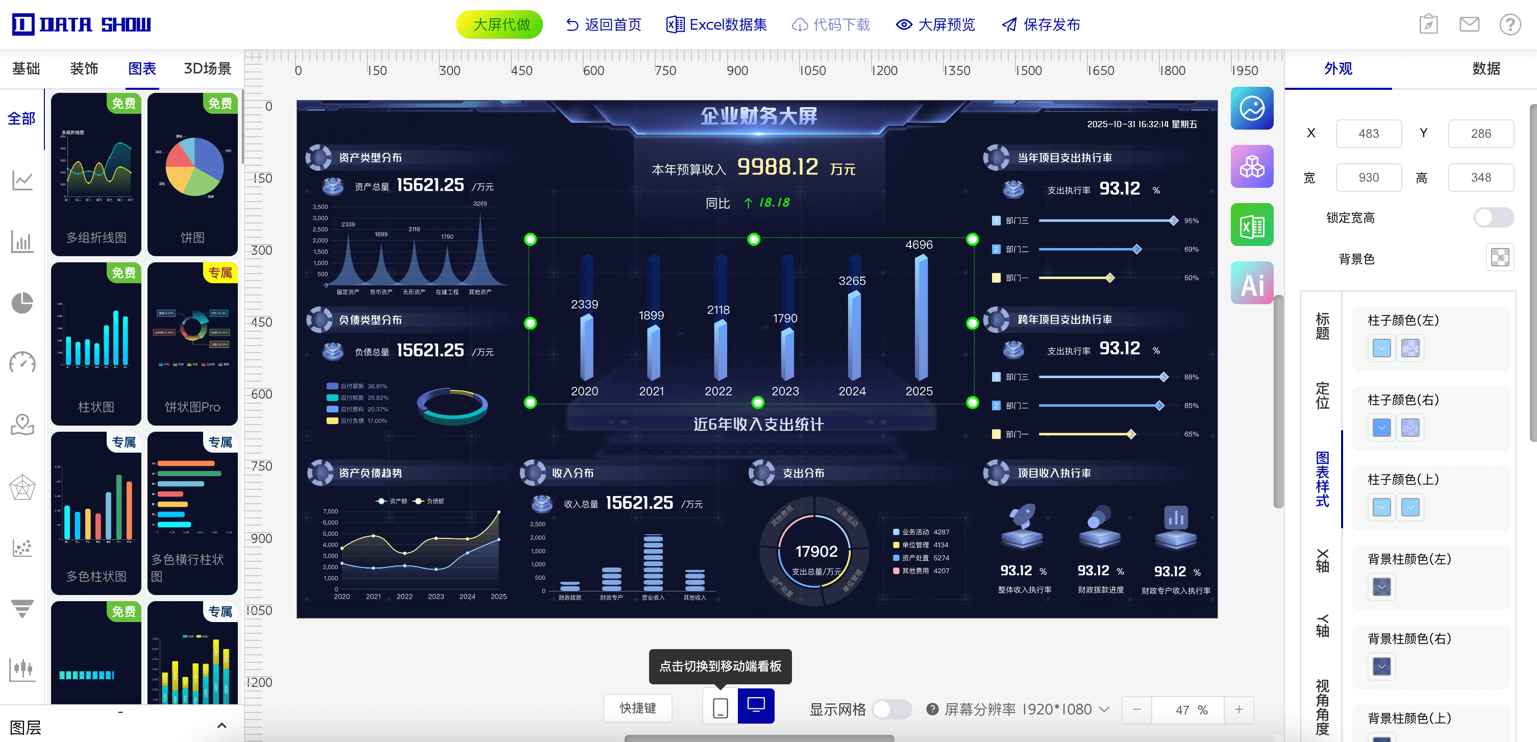 零代码可视化报表:7个可直接套用的炫酷报表模板分享-DataShow可视化编辑器